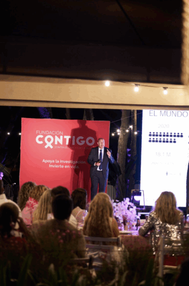 El Dr. Javier Cortés, presidente de la Fundación Contigo, subrayó la importancia de seguir impulsando la investigación para mejorar la vida de las pacientes. Presentó además el Proyecto Phenix, una iniciativa clave para avanzar en el conocimiento del cáncer de mama HER2+ metastásico, al que se destinará el 100% de la recaudación de la gala.