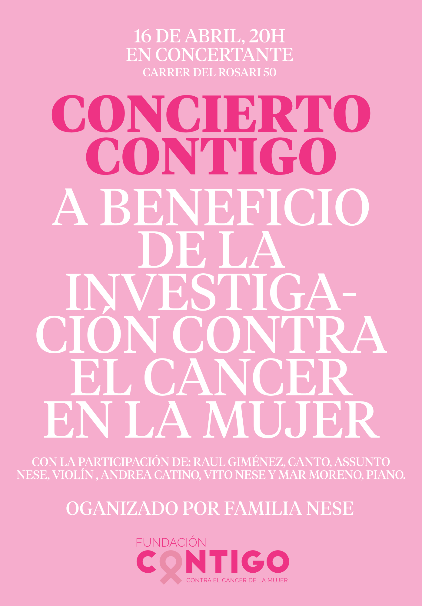 Concierto de música clásica organizado por la familia Nese con el propósito de apoyar a la Fundación Contigo contra el Cáncer en la Mujer y para rendir un sentido homenaje al equipo del International Breast Cancer Center (IBCC), por su compromiso y calidad humana.